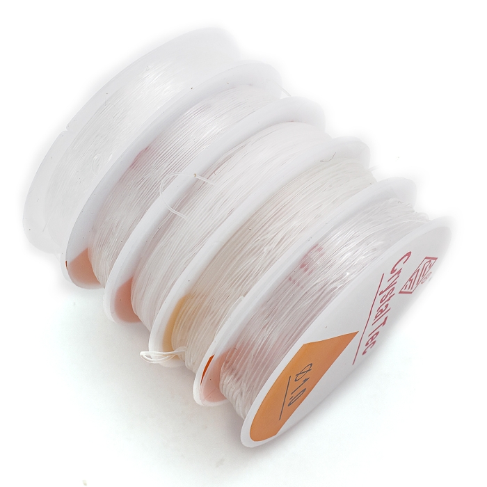 Набор Силиконовая Нить Эластичная для Бижутерии, Резинка, Бесцветная, 0.4мм/18м, 0.5мм/15м, 0.6мм/12м, 0.8мм/6м, 1мм/4м, 5 катушек/набор, (УТ100030885)