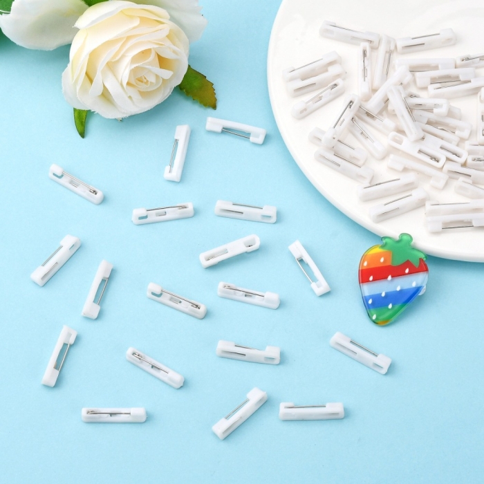 Основа под Брошь Пластиковая с Булавкой из Железа, Белая, 22х5мм, (УТ100030944)