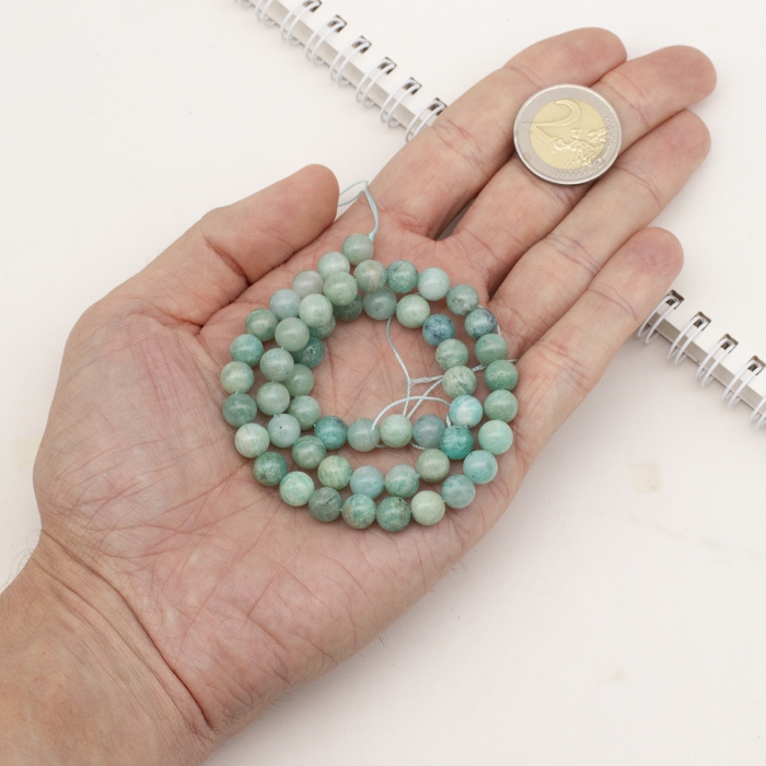 Бусины Натуральный Амазонит, На нитях, Круглые, Размер: Диаметр: 7-8мм, Отверстие 1мм, около 48шт/36см/нить, (УТ100031054)