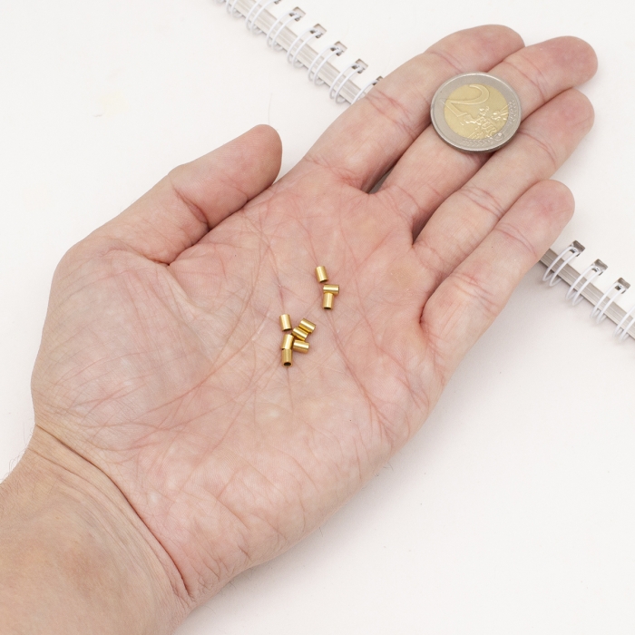 Бусины Зажимные Стопперы, Кримпы, Латунь, Цилиндр, Цвет: Серебро, Размер: 1.5х2мм, Отверстие 1мм, 5г/около 475шт (УТ0002564)