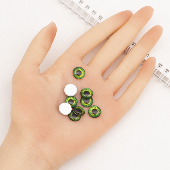 Кабошоны Глазки Стеклянные Круглые, Зеленые, 12х4мм, (УТ100031436)