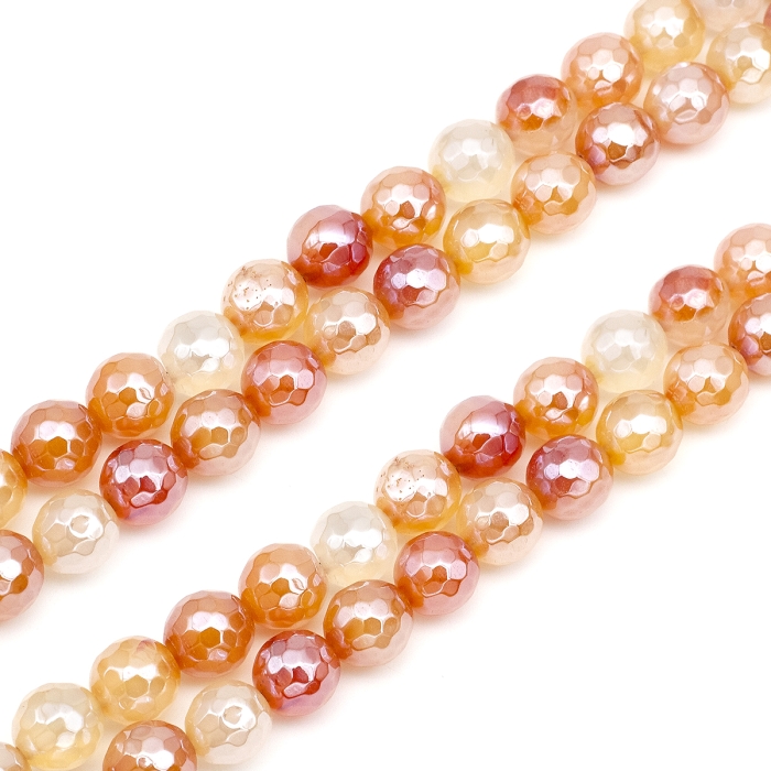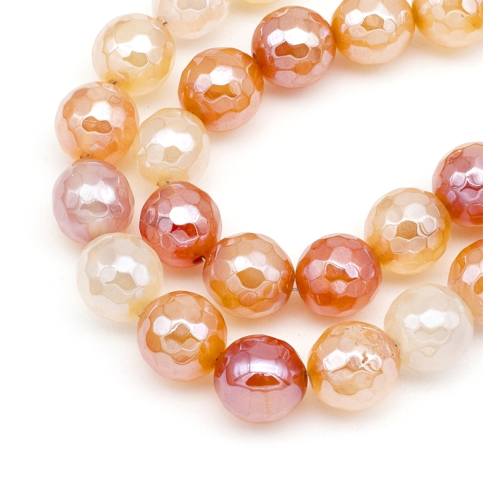Бусины Натуральный Агат, Круглые Граненые, Гальваника, Перламутровое покрытие, на Нитях, Окрашенные