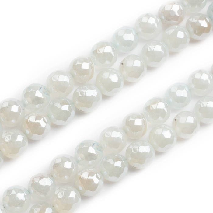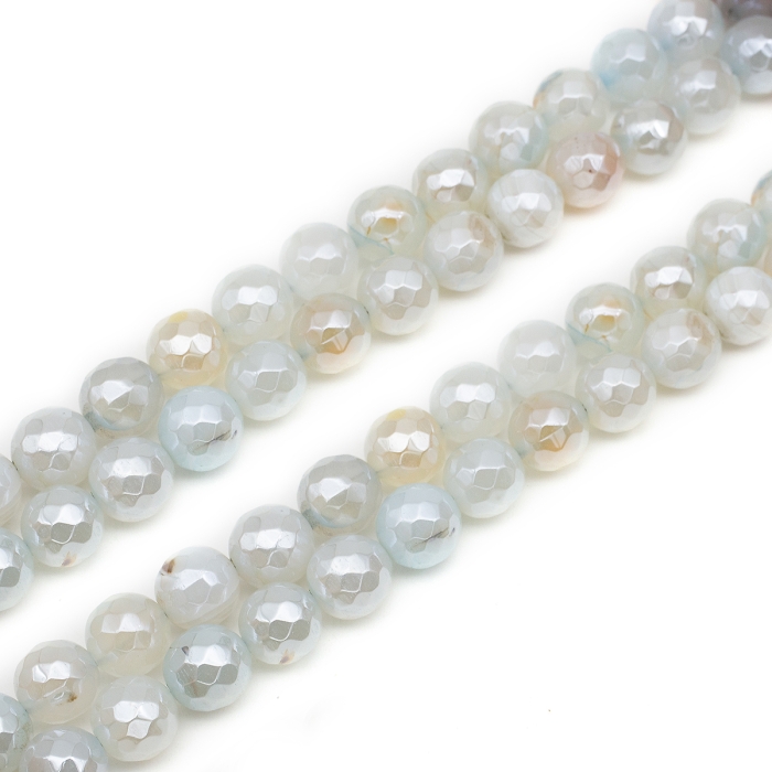 Бусины Натуральный Агат, Круглые Граненые, Гальваника, Перламутровое покрытие, на Нитях, Окрашенные