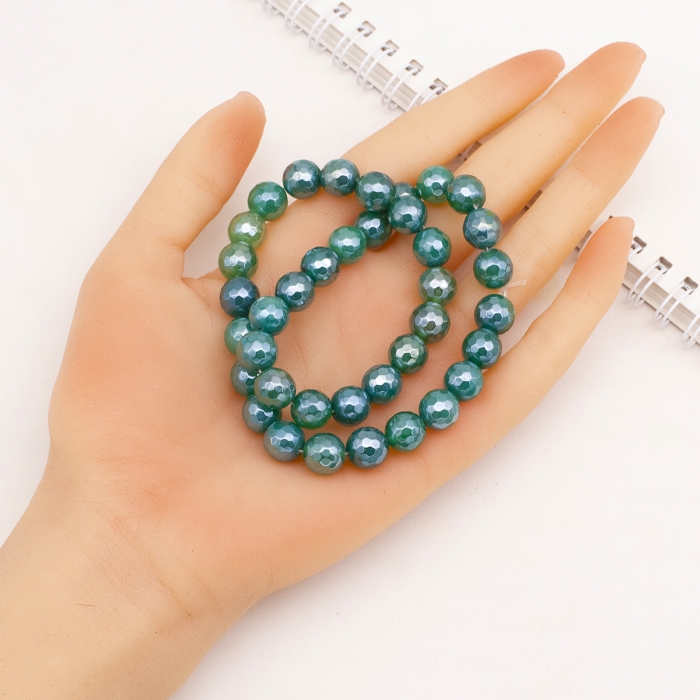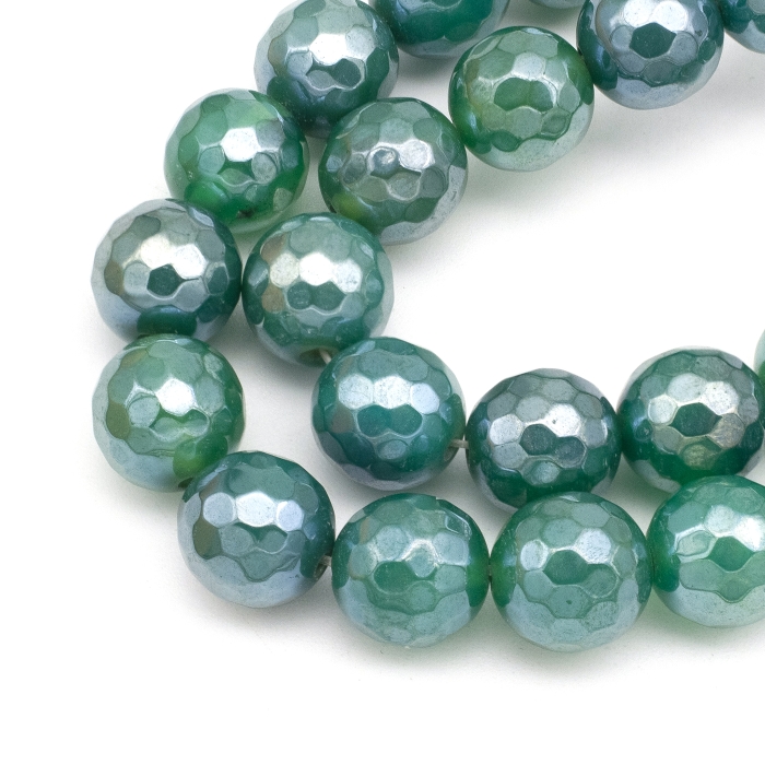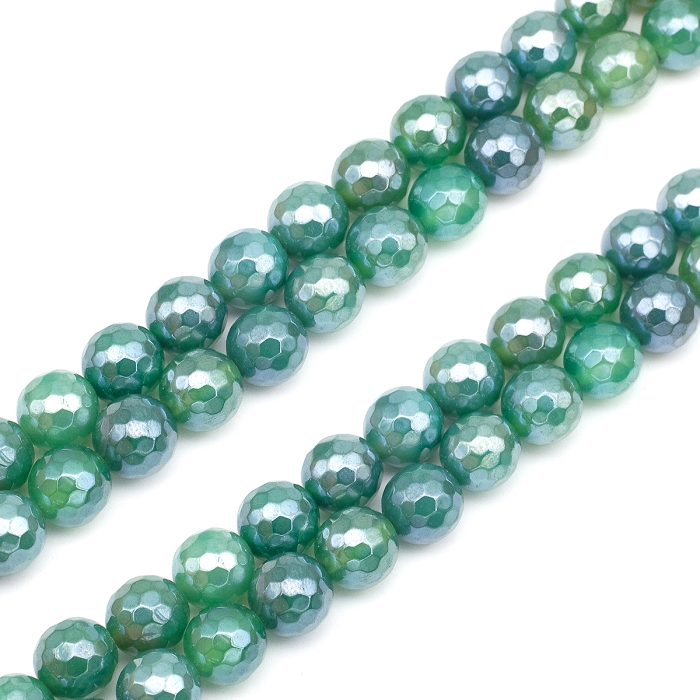 Бусины Натуральный Агат, Круглые Граненые, Гальваника, Перламутровое покрытие, на Нитях, Окрашенные Страна происхождения камня: Бразилия