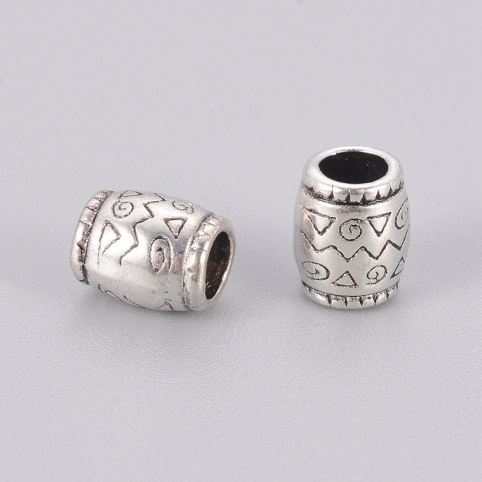 Бусины-Разделители Бижутерный Сплав Тибетский стиль Бочонок Колонка, Античное Серебро, 8х6.5мм, Отверстие 4мм, (УТ100031738)