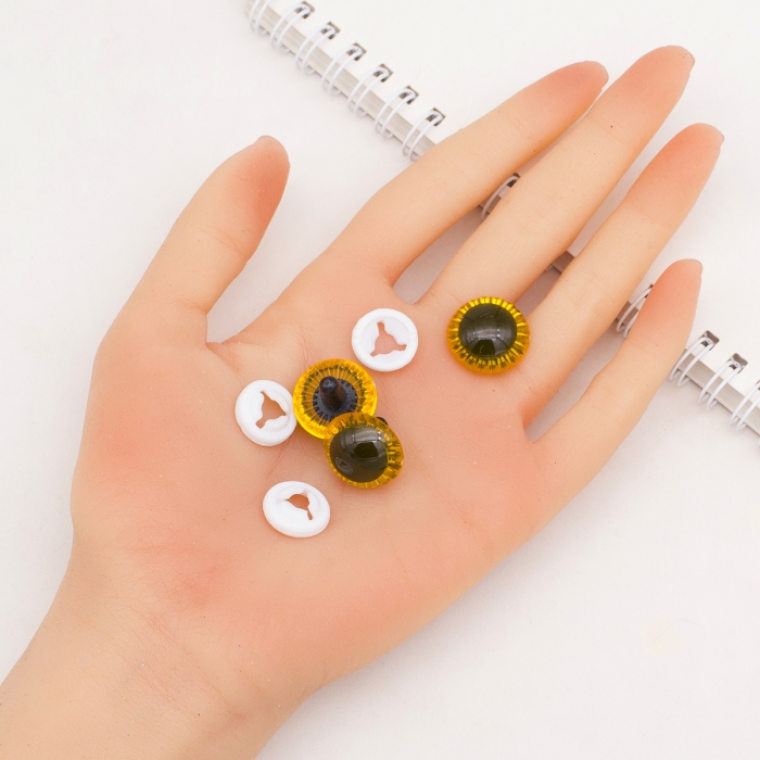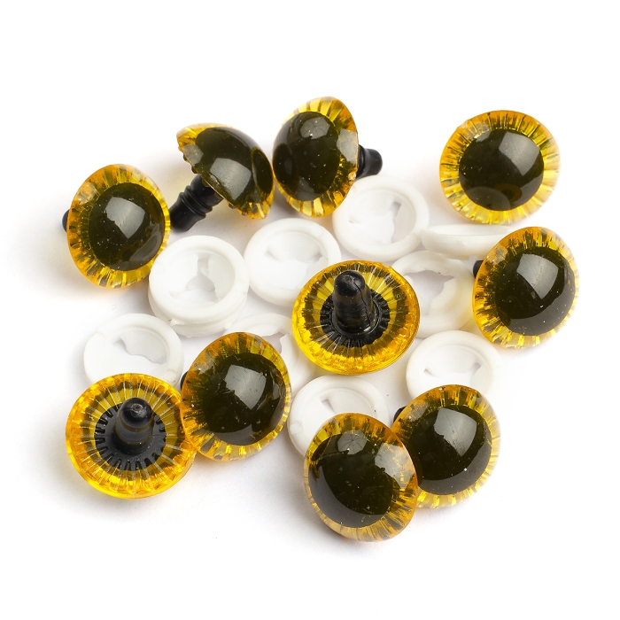 Глазки для Игрушек и Кукол со Штифтом и Фиксатором Пластиковые, Желтые, 19.5мм, Фиксатор 15х4мм(УТ100031930)