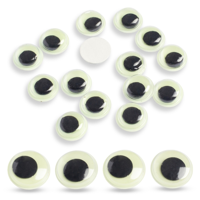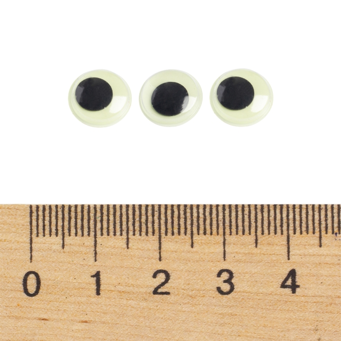 Глазки Живые с Плоским Клеющимся Основанием, Пластиковые, Круглые, Флуорисцентные (светящиеся в темноте)
