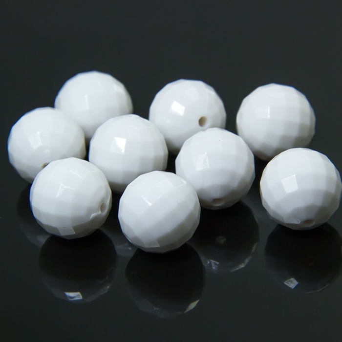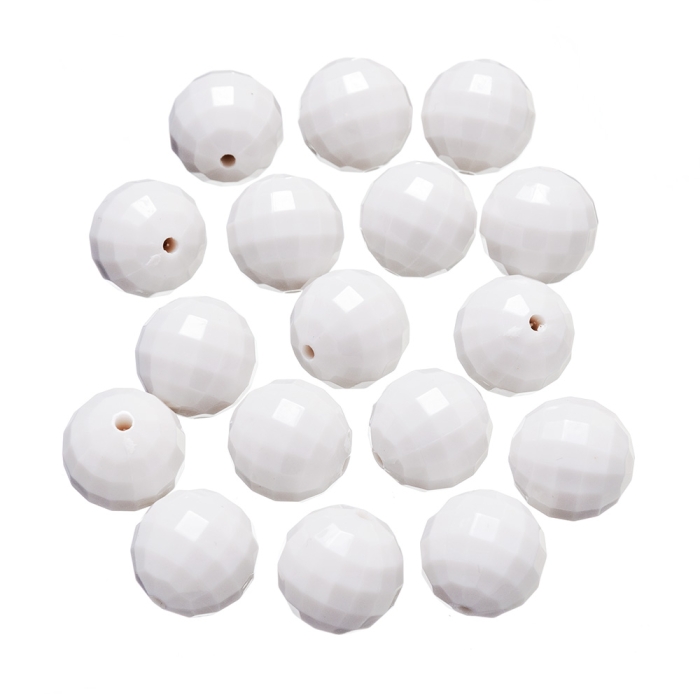 Бусины Акрил Граненые, Непрозрачные, Круглые, Цвет: Белый, Диаметр: 14мм, Отверстие 2мм, около 30шт/50г, (УТ000003585)