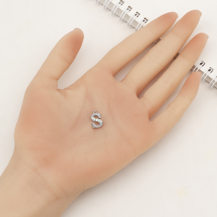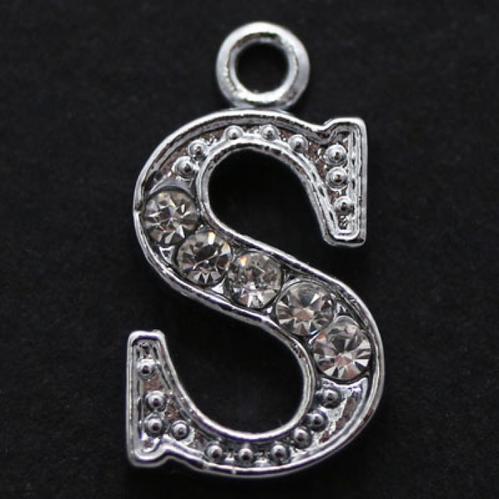 Кулон Металл со Стразами, Цвет: Платина, Размер: 15х8х2.5мм, Отверстие 1.5мм, (УТ000006107)