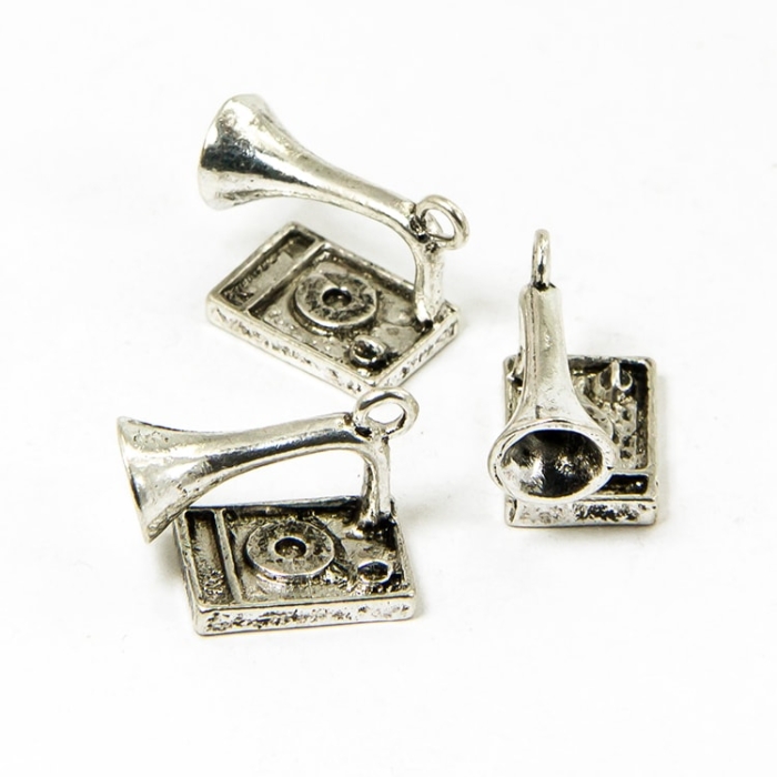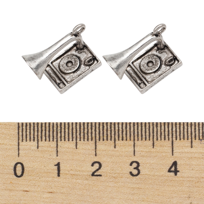 Кулон Граммофон, Металл, Цвет: Античное Серебро, Размер: 17х12х9мм, Отверстие 2мм, (УТ000006424) - ᐈ заказывайте в Москве оптом и в розницу ✅Скидки ✅Акции ✅Распродажи ᐈ доставка по всей России ᐈ Интернет-магазин Мир Бусин