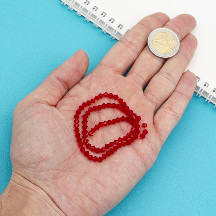 Бусины Австрийский Хрусталь Имитация, Стеклянные, Граненые Биконус, Красный, 4х4мм, Отверстие 1мм, около 80шт/30см/нить, (УТ000007079) - ᐈ заказывайте в Москве оптом и в розницу ✅Скидки ✅Акции ✅Распродажи ᐈ доставка по всей России ᐈ Интернет-магазин Мир Бусин