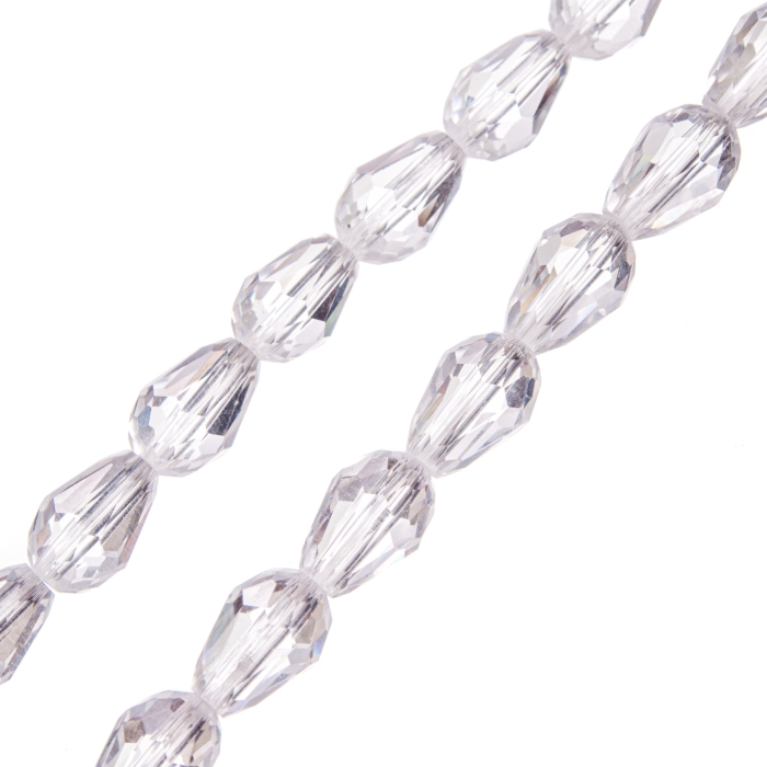 Бусины Стеклянные Капля Прозрачные Граненые, Бесцветный, 6х4мм, Отверстие 1мм, около 68шт/36см/нить, (УТ000007305) - ᐈ заказывайте в Москве оптом и в розницу ✅Скидки ✅Акции ✅Распродажи ᐈ доставка по всей России ᐈ Интернет-магазин Мир Бусин