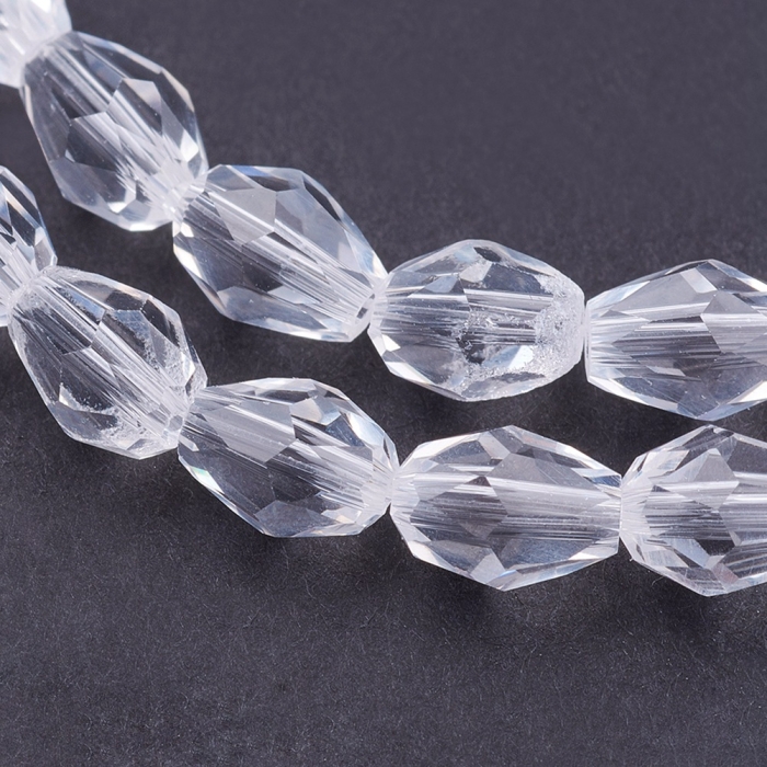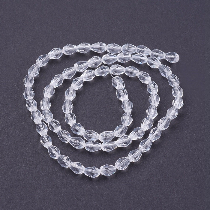 Бусины Стеклянные Капля Прозрачные Граненые, Бесцветный, 6х4мм, Отверстие 1мм, около 68шт/36см/нить, (УТ000007305)