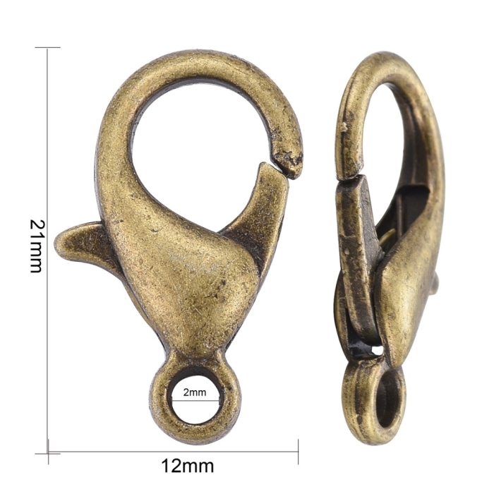 hot Застежка Карабин-Лобстер из Сплава, Бронзовый Цвет, 21х12мм, Отверстие 2мм, (УТ000007621)