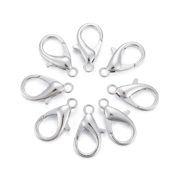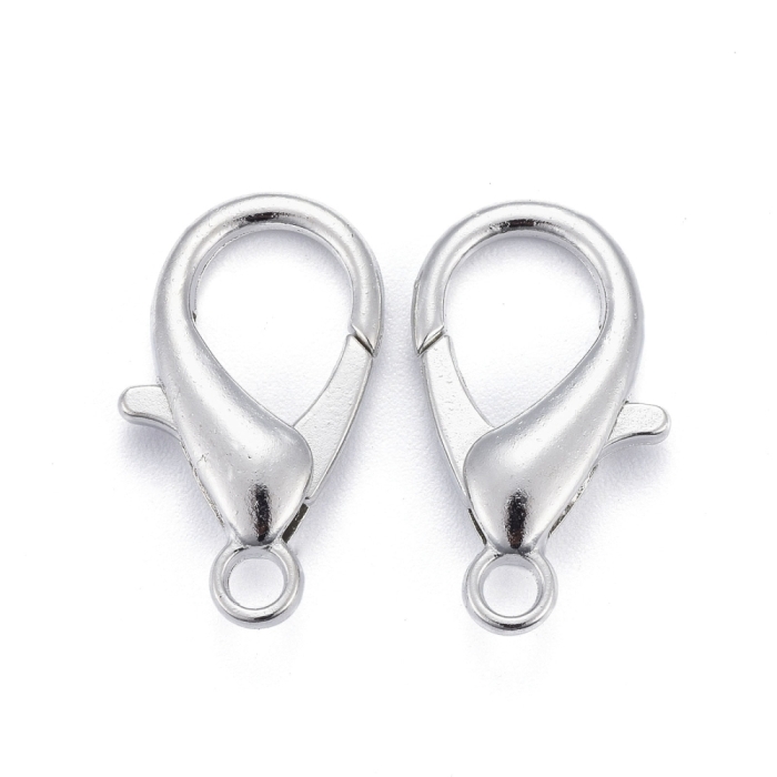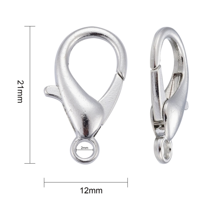 Застежка Карабин-Лобстер, Металлический Сплав, Цвет: Платина, Размер: 21х12мм, Отверстие 2мм, (УТ000007898)