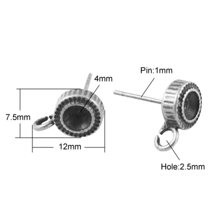 Основы для Пусет под Вставку, Металл, Цвет: Античное Серебро, Размер: 15х7.5мм, Отв-тие 2.5мм, Штифт 1мм, пригоден под стразы 4мм, (УТ0002093)