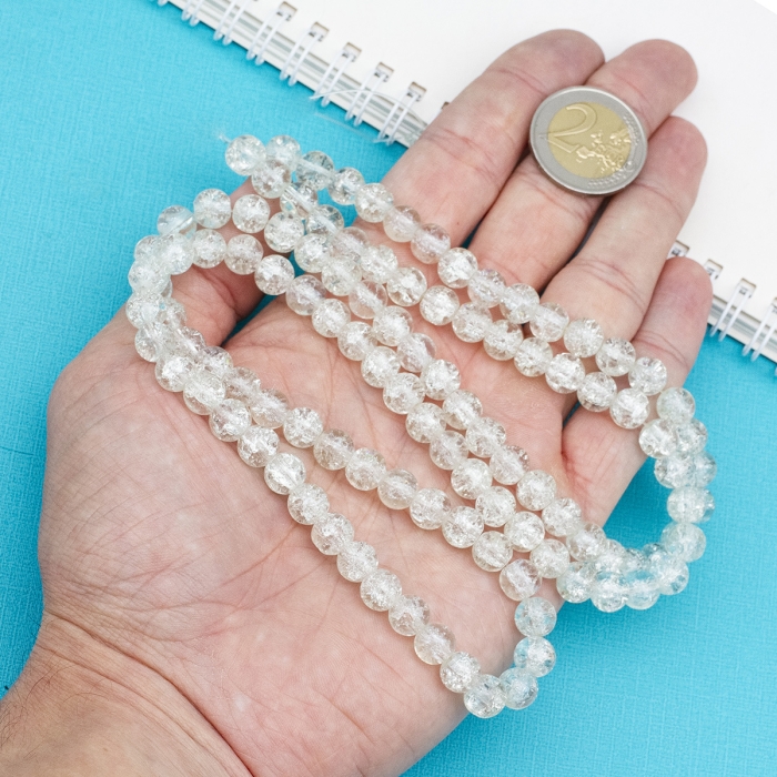 Бусины Стеклянные Кракле "Битое Стекло" Круглые Прозрачные, Бесцветный, 8мм, Отверстие 1мм, около 95шт/76см/нить, (УТ0002517) - ᐈ заказывайте в Москве оптом и в розницу ✅Скидки ✅Акции ✅Распродажи ᐈ доставка по всей России ᐈ Интернет-магазин Мир Бусин
