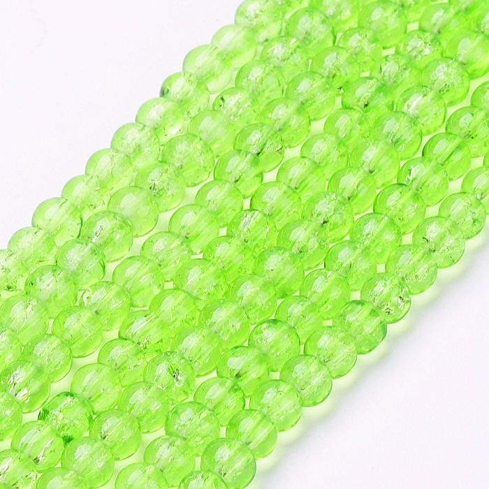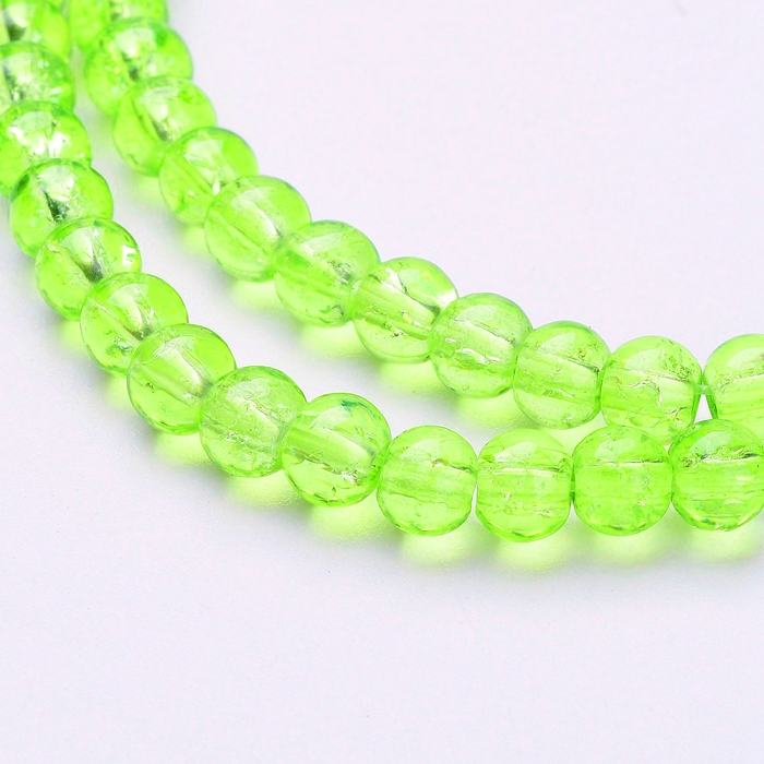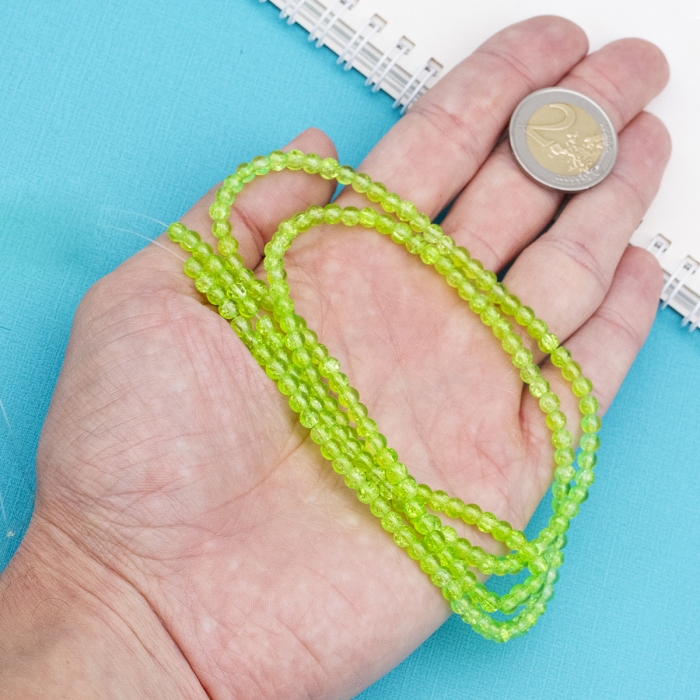 Бусины Кракле "Битое Стекло" Круглые, Цвет: Зеленый бледный, Диаметр: 4мм, Отверстие 1мм, около 190шт/76см/нить, (УТ0002520)