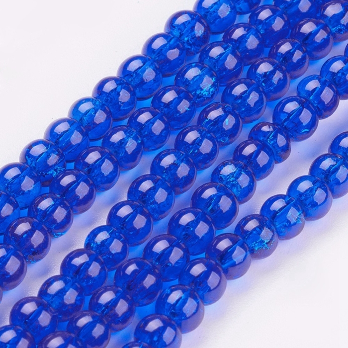 Бусины Кракле "Битое Стекло" Круглые, Цвет: Синий, Диаметр: 4мм, Отверстие 1мм, около 190шт/76см/нить, (УТ0002914)
