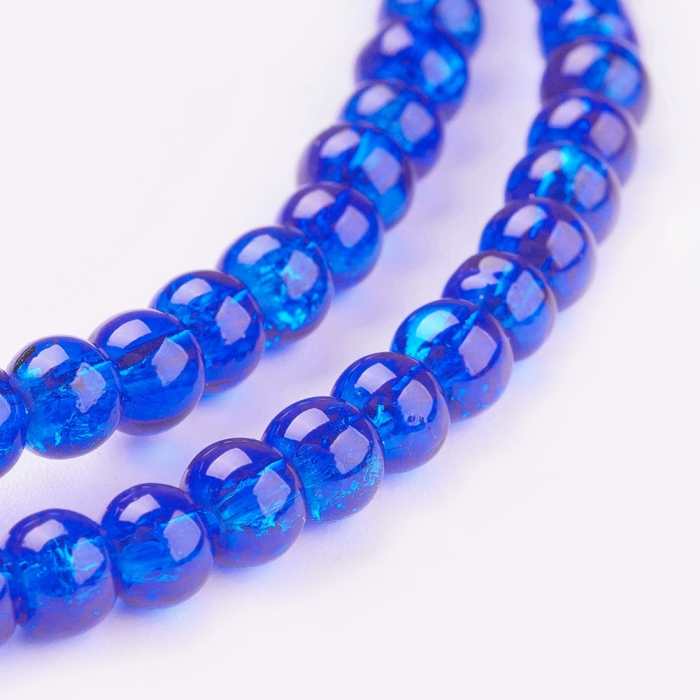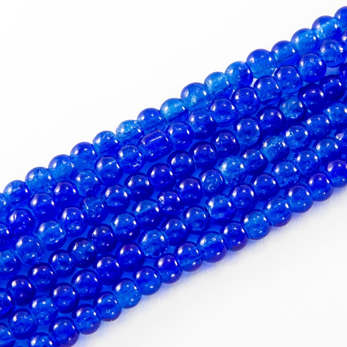 Бусины Кракле "Битое Стекло" Круглые, Цвет: Синий, Диаметр: 4мм, Отверстие 1мм, около 190шт/76см/нить, (УТ0002914) - ᐈ заказывайте в Москве оптом и в розницу ✅Скидки ✅Акции ✅Распродажи ᐈ доставка по всей России ᐈ Интернет-магазин Мир Бусин