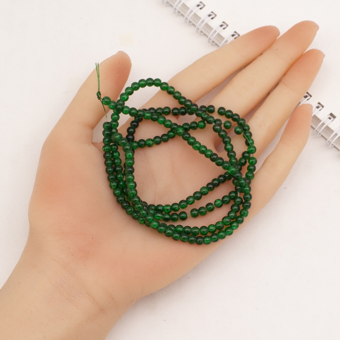 Бусины Стеклянные Кракле, "Битое Стекло" Круглые, Темно-Зеленый, 4мм, Отверстие 1мм, около 190шт/76см/нить, (УТ0005827) - ᐈ заказывайте в Москве оптом и в розницу ✅Скидки ✅Акции ✅Распродажи ᐈ доставка по всей России ᐈ Интернет-магазин Мир Бусин