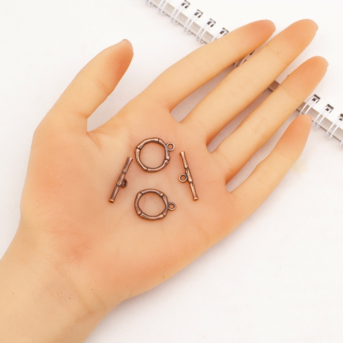 Застежка тогл из металлического сплава — это стильный и функциональный элемент фурнитуры, который используется для надёжного соединения концов украшений. Она состоит из двух частей: штанги и кольца, которые фиксируются друг с другом. Такой тип застёжки не только практичен, но и служит декоративным элементом, добавляя оригинальности изделиям.