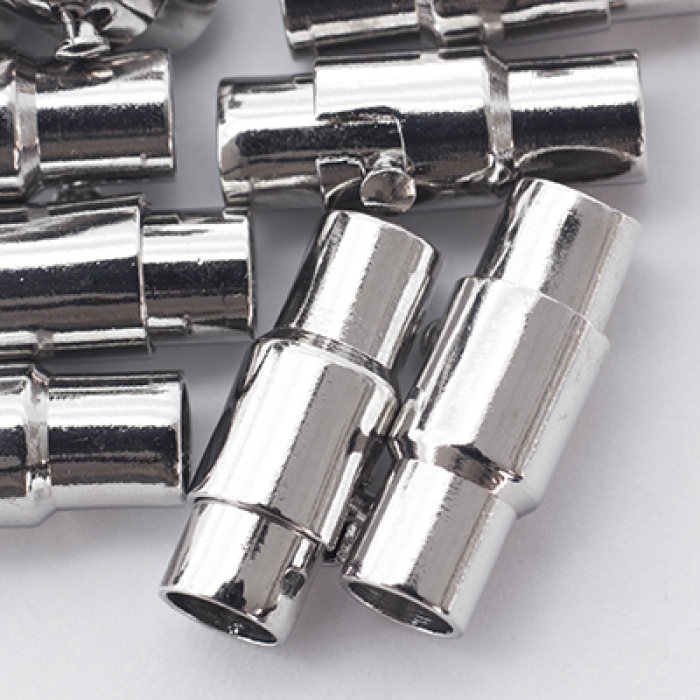 Застежка Магнитная Латуннная Трубка, Платина, 15х6мм, Отверстие 4мм, (УТ0026288)
