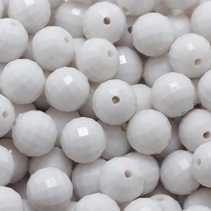 Бусины Акрил Граненые, Непрозрачные, Круглые, Цвет: Белый, Диаметр: 10мм, Отверстие 1.8мм, около 90шт/50г, (УТ000003584)