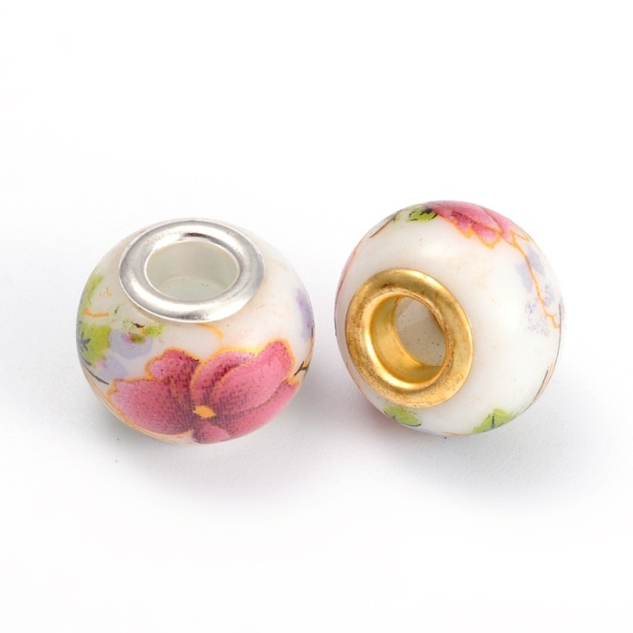Шармы Евробусины Стеклянные, Роспись Лист, Вставка из Латуни цвета Серебро и Золото, Рондель, Микс, 14.5x11мм, Отверстие 5мм, (УТ0028968) - ᐈ заказывайте в Москве оптом и в розницу ✅Скидки ✅Акции ✅Распродажи ᐈ доставка по всей России ᐈ Интернет-магазин Мир Бусин