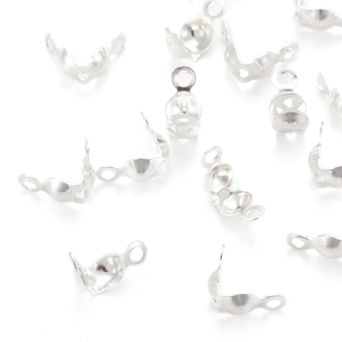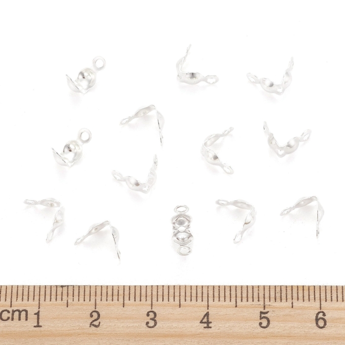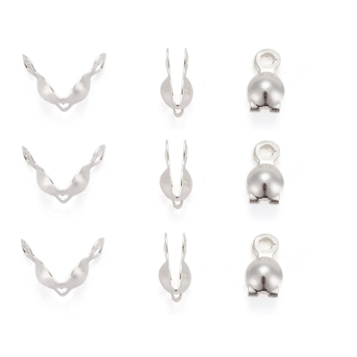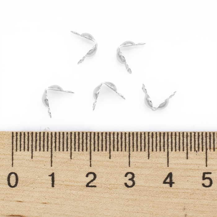 Каллоты Латунь, Зажимы концевики для бус, Серебро, 7х4мм, Отв. 1мм, Диаметр внутри 3мм, (УТ0029423)