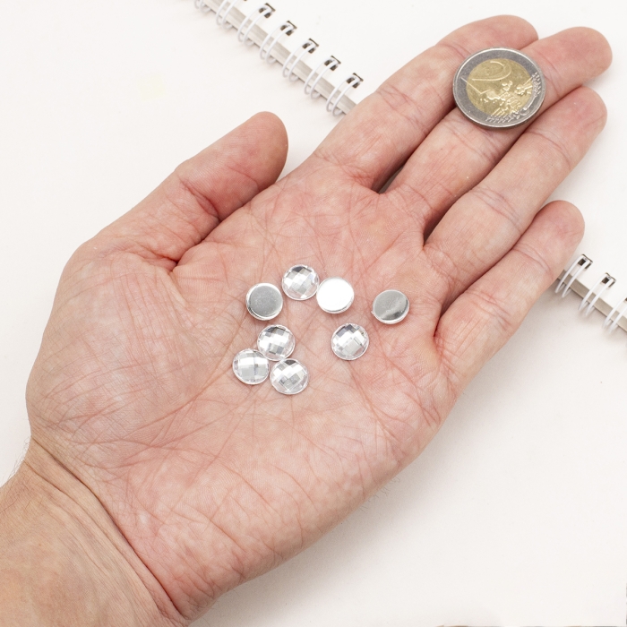 Стразы - Кабошоны Акриловые, Граненые, Плоские, Круглые, Диаметр 10мм, Толщина 3.5мм.