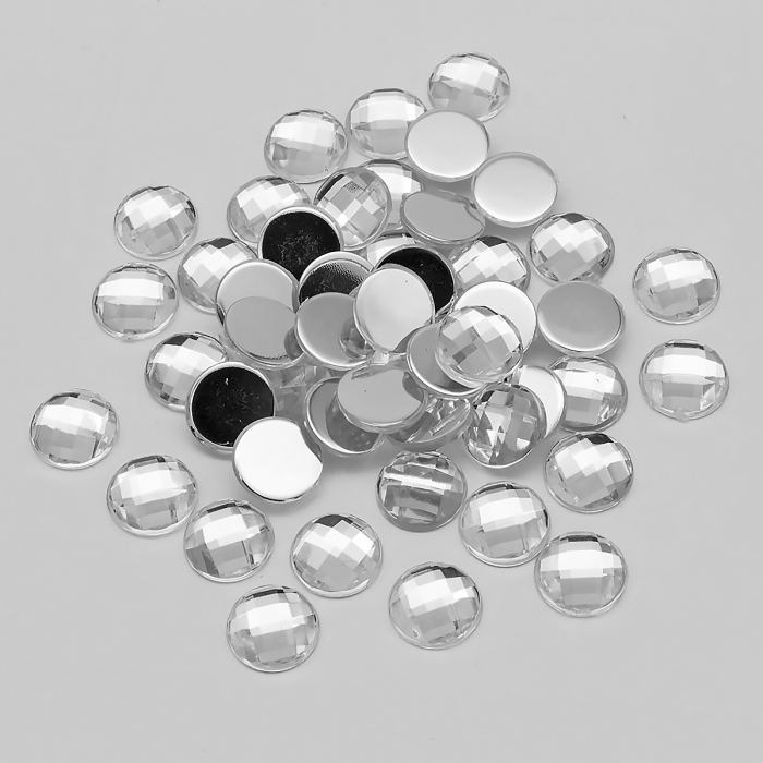 Акриловые стразы-кабошоны являются декоративными элементами, которые широко используются в различных видах творчества и декорирования. Они изготовлены из акрила, что делает их легкими и доступными по цене, а граненая поверхность придает им блеск и визуальную привлекательность, имитируя драгоценные камни.