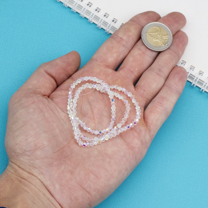 Бусины Австрийский Хрусталь Класс АА, Имитация, Биконус, Гальваника АВ-цвет, Радужный, 3х3мм, Отв-тие: 1мм, около 107шт/32см/нить (УТ0031054) - ᐈ заказывайте в Москве оптом и в розницу ✅Скидки ✅Акции ✅Распродажи ᐈ доставка по всей России ᐈ Интернет-магазин Мир Бусин