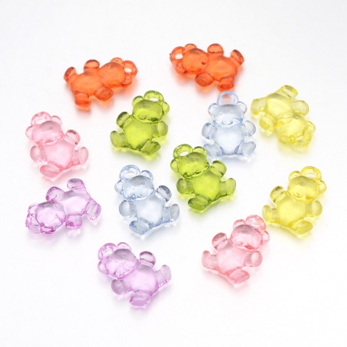 Подвески Акрил, Прозрачные, Мишки, Цвет: Микс, Размер: 20х15мм, Отверстие 2.5мм, ок 32шт/25г, (УТ0030486)