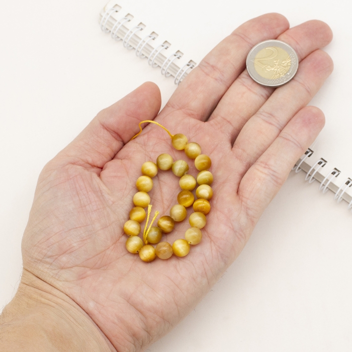 Бусины Натуральный Тигровый Глаз, на нитях, Круглые, Цвет: Желтый, Размер: 8мм, Отверстие 1мм, около 22шт/нить, (УТ0030731) - ᐈ заказывайте в Москве оптом и в розницу ✅Скидки ✅Акции ✅Распродажи ᐈ доставка по всей России ᐈ Интернет-магазин Мир Бусин