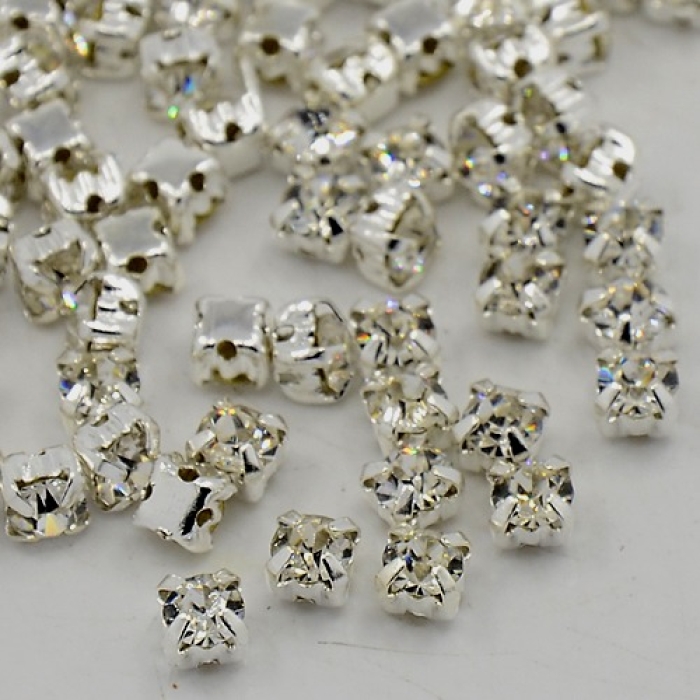 Пришивные Стеклянные Стразы Квадратные Класс А, Цапы Латунь Серебряного Цвета, Кристалл, 3~3.2x3~3.2мм, Отверстие до 1мм, (УТ100005939) - ᐈ заказывайте в Москве оптом и в розницу ✅Скидки ✅Акции ✅Распродажи ᐈ доставка по всей России ᐈ Интернет-магазин Мир Бусин