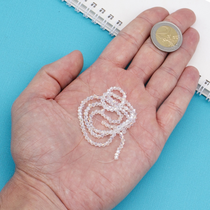 Бусины Гальваника Стекляные АВ-Цвет Радужный Эффект Граненые Биконус, Бесцветный, 2х3мм, Отверстие 0.5мм, около 140шт/40см/нить, (УТ100007091) - ᐈ заказывайте в Москве оптом и в розницу ✅Скидки ✅Акции ✅Распродажи ᐈ доставка по всей России ᐈ Интернет-магазин Мир Бусин