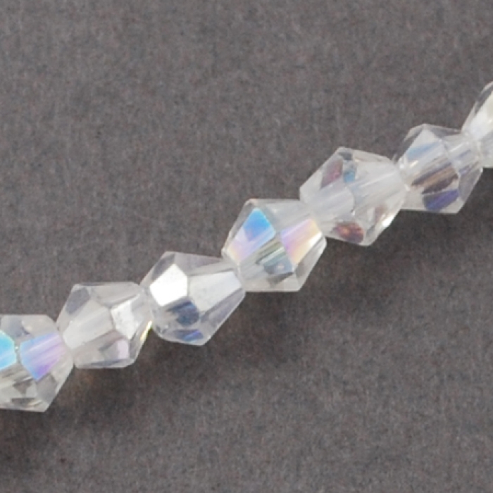 Бусины Гальваника Стекляные АВ-Цвет Радужный Эффект Граненые Биконус, Бесцветный, 2х3мм, Отверстие 0.5мм, около 140шт/40см/нить, (УТ100007091)