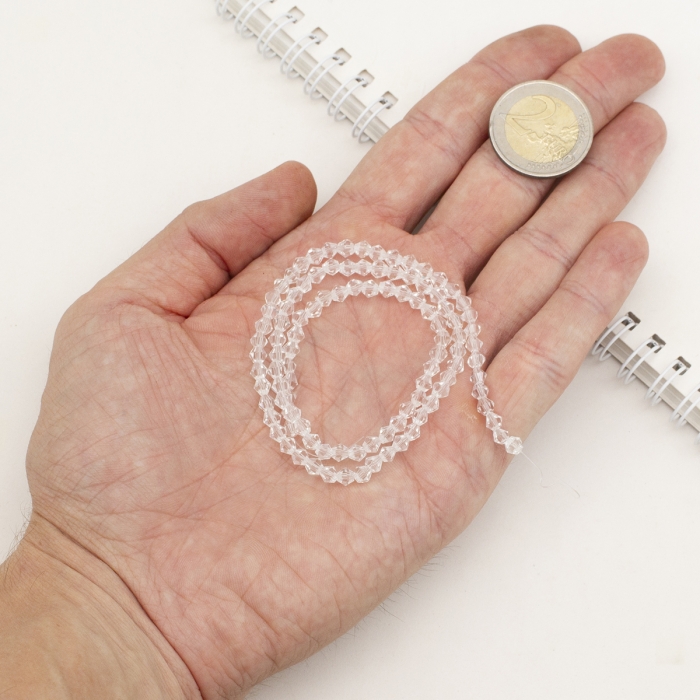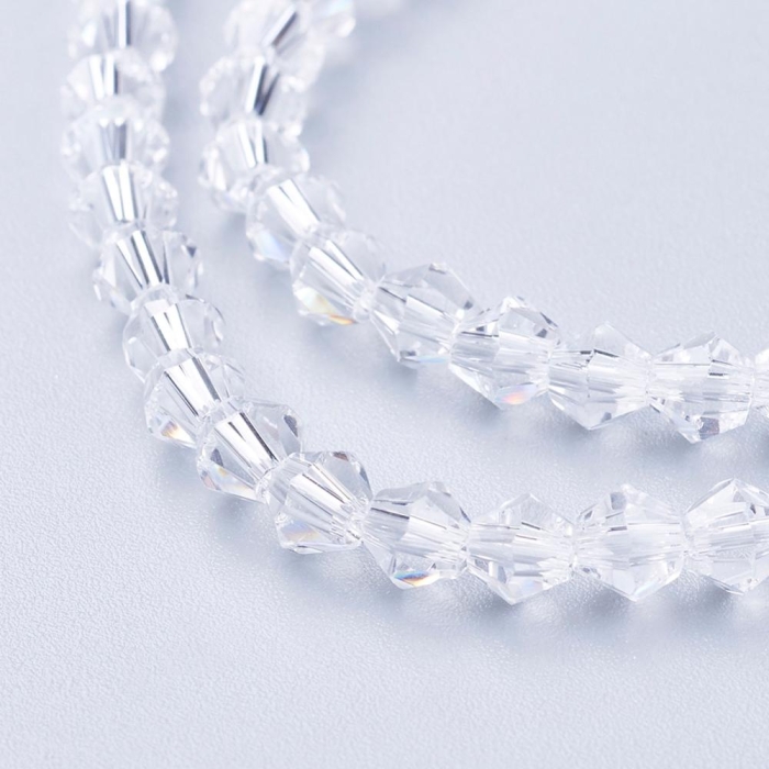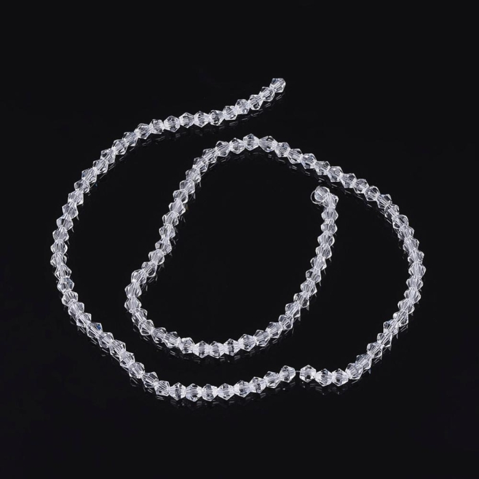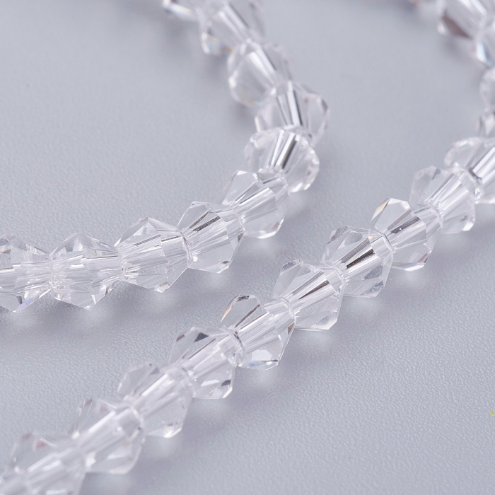 Бусины Австрийский Хрусталь Имитация, Стеклянные, Граненые Биконус, Бесцветный, 4х4мм, Отверстие 1мм, около 80шт/30см/нить, (УТ100006911) - ᐈ заказывайте в Москве оптом и в розницу ✅Скидки ✅Акции ✅Распродажи ᐈ доставка по всей России ᐈ Интернет-магазин Мир Бусин