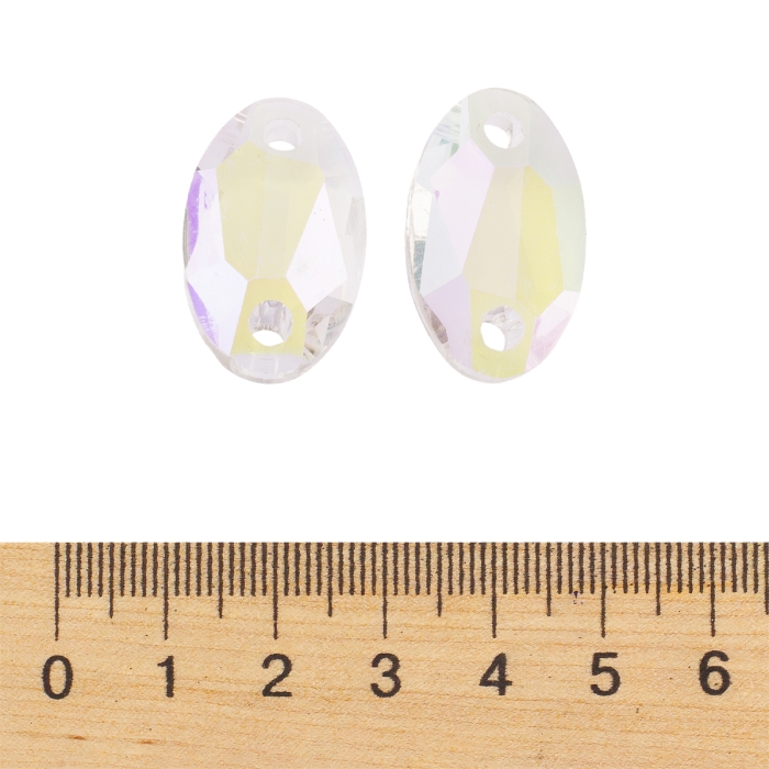 Коннектор из Стекла, Овальный, Граненый, с Гальваникой, 2 отверстия,