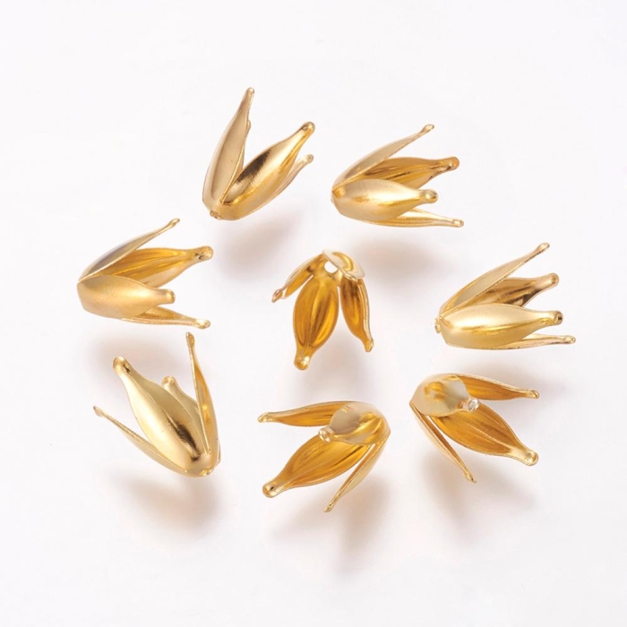 Конус Шапочки для Бусин Цветок Железные, Золото, 13x7x7мм, Отверстие 1мм, (УТ100007973) - ᐈ заказывайте в Москве оптом и в розницу ✅Скидки ✅Акции ✅Распродажи ᐈ доставка по всей России ᐈ Интернет-магазин Мир Бусин