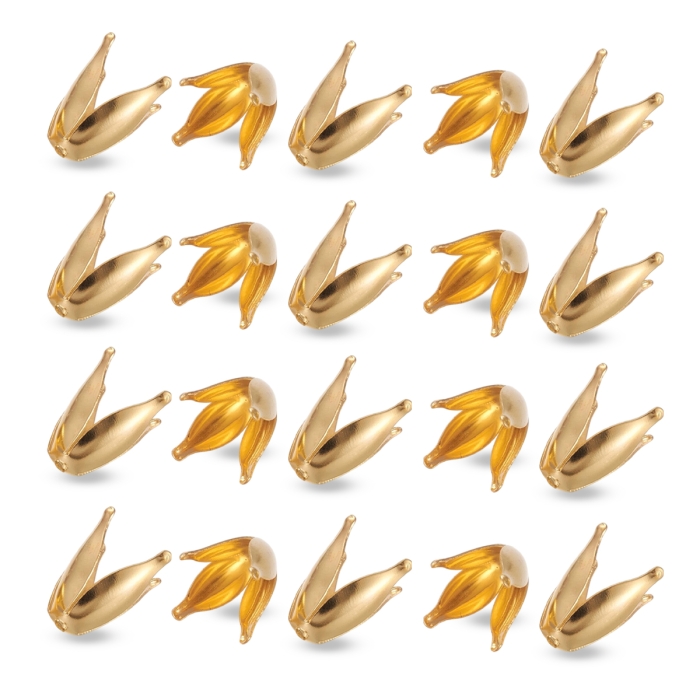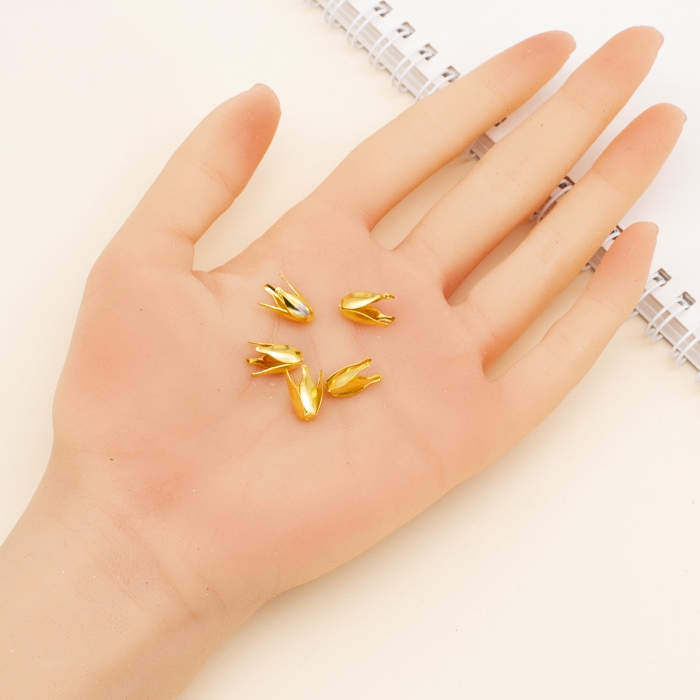 Шапочки имеют аккуратный дизайн, они не только украшают бусины, но и фиксируют их положение, предотвращая смещение в композиции. Лёгкость материала делает их идеальными для использования в серьгах, браслетах и ожерельях, не утяжеляя изделия.