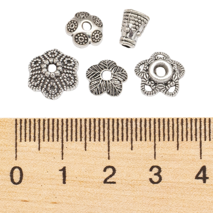 Конус Шапочки для Бусин Микс, Античное Серебро, 5~30x3~12мм, Отверстие 1~2.5мм, около 38шт/20г, (УТ100006826) - ᐈ заказывайте в Москве оптом и в розницу ✅Скидки ✅Акции ✅Распродажи ᐈ доставка по всей России ᐈ Интернет-магазин Мир Бусин