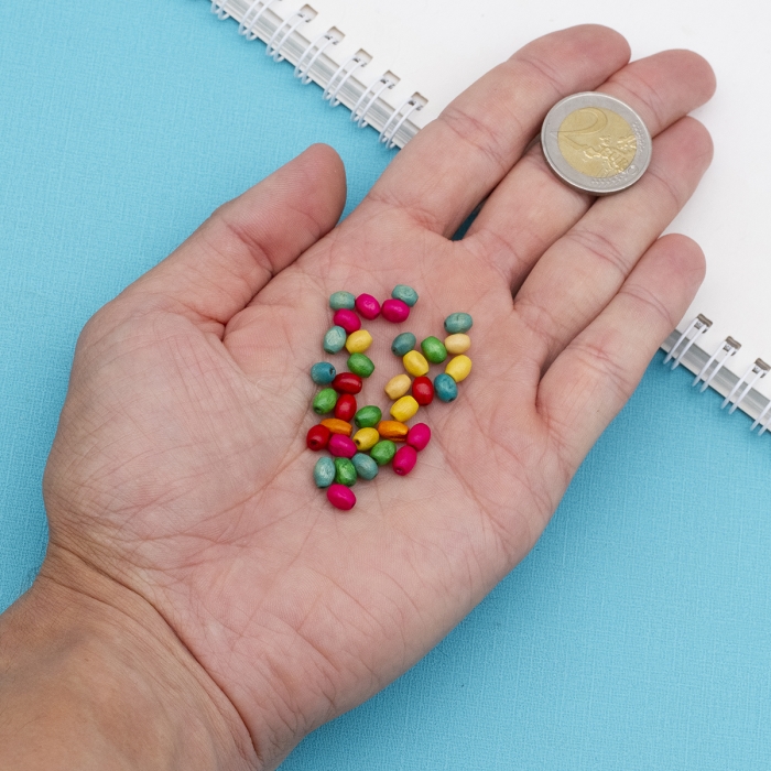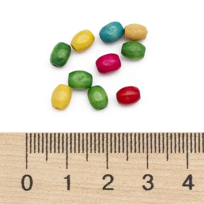 Бусины Деревянные Окрашенные, Овальные, Цвет: Микс, Размер: 6x4~5мм, Отв-тие 2мм, около 500шт/25г, (УТ100009566)