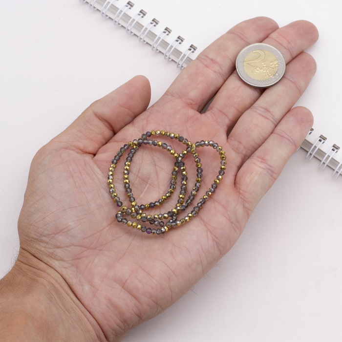Бусины Гальваника Стекло, Граненые, Рондель, Цвет: Золотистый, Размер: 3х2мм, Отв-тие: 1мм, около 155шт/35см/нить, (УТ100009215)