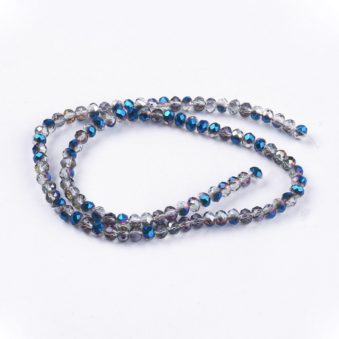 Бусины Гальваника Стекло АВ-Цвет, Граненые, Рондель, Синий, 3х2мм, Отв-тие: 1мм, около 128шт/35см/нить, (УТ100009234)
