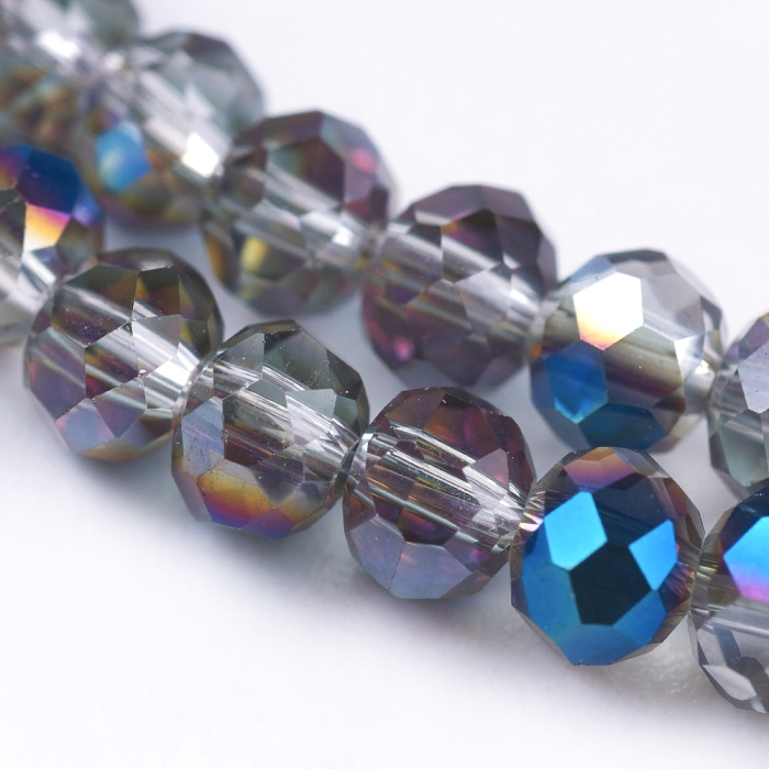 Эти бусины с бензиновым или радужным покрытием имеют характерный цветовой блеск на поверхности, они переливаются на солнце всеми цветами радуги.