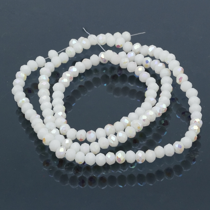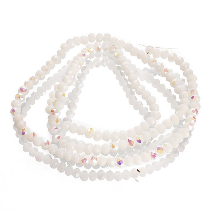 Бусины Гальваника Стекло АВ-Цвет, Полупокрытие, Непрозрачные Граненые, Рондель, Светло-серый, 3х2мм, Отв. 0.5мм, ок.150шт/30см/нить (УТ100009316)