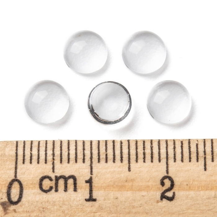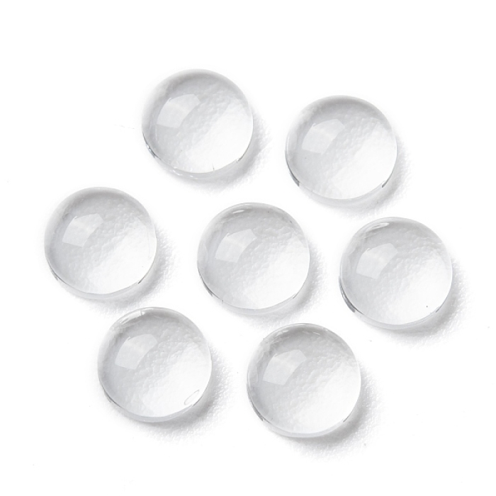 Круглые стеклянные кабошоны — это универсальные элементы для декорирования, отличающиеся гладкой поверхностью и эффектом объема. Они изготовлены из высококачественного стекла, что придаёт им прозрачность и блеск, усиливающий глубину цвета и рисунка основы, с которой они используются. Полукруглая форма придает кабошонам выпуклость, позволяя фокусировать свет и создавать визуальный эффект увеличения изображения под стеклом.