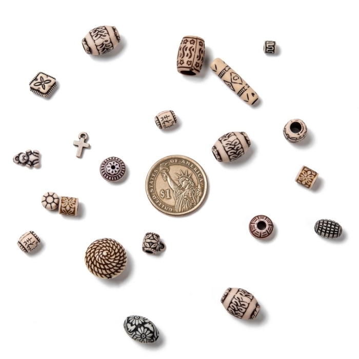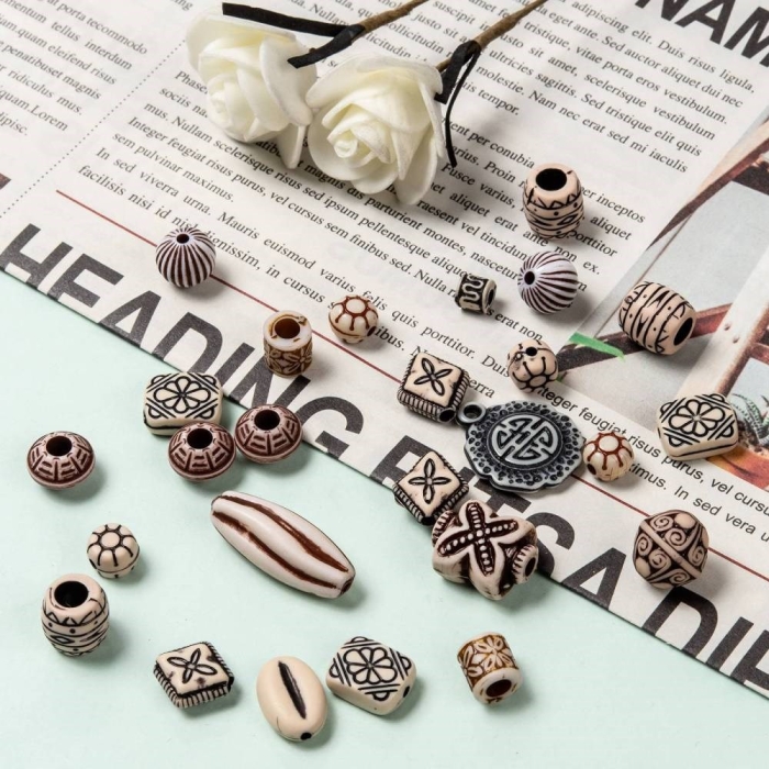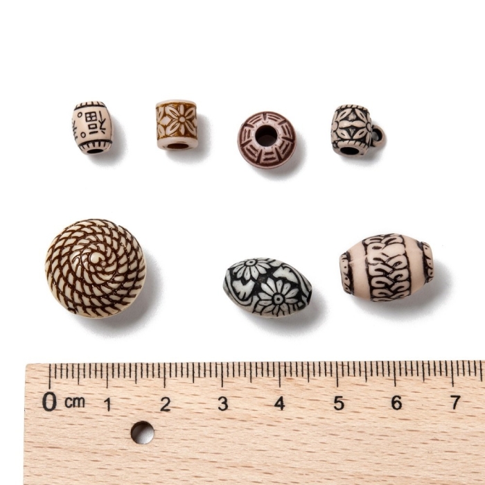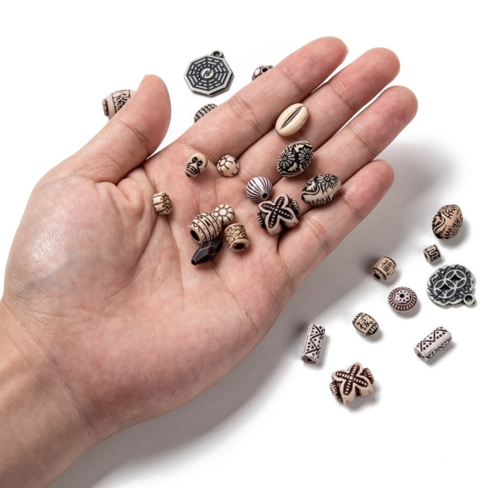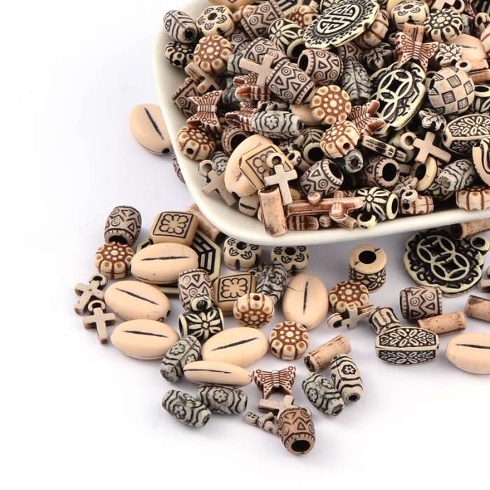 Бусины Акриловые Античные, Смешанные формы — это изысканное сочетание легкости и декоративной выразительности. Выполненные в этническом и античном стиле, они идеально подойдут для создания уникальных украшений: браслетов, ожерелий, серёжек, а также аксессуаров в стиле бохо и этно. Прекрасно подходят для декора интерьера, букетов и поделок. Благодаря своей прочности и легкости, они удобны в работе, а их разнообразные формы и орнаменты добавляют изделиям особую атмосферу старины и утончённости.